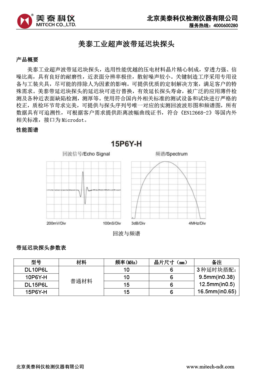 產(chǎn)品概述美泰工業(yè)超聲波帶延遲塊探頭,選用性能優(yōu)越的壓電材料晶片精心制成,穿透力強(qiáng)、信噪比高,具有良好的耐磨性,近表面分辨率極佳,散射噪聲較小。關(guān)鍵制造工序采用專用設(shè)備與工裝夾具,盡可能的排除人為因素的影響??商峁﹥?yōu)質(zhì)的定制解決方案,滿足客戶的特殊需求。美泰帶延遲塊探頭的延遲塊可進(jìn)行替換,有效延長探頭壽命,被廣泛的應(yīng)用薄件檢測及各種近表面缺陷檢測,測厚等。使用符合國內(nèi)外相關(guān)標(biāo)準(zhǔn)的測試設(shè)備和試塊進(jìn)行嚴(yán)格的校正,質(zhì)檢環(huán)節(jié)苛求完美,可提供與探頭序列號唯一對應(yīng)的實測回波波形圖和頻譜圖,所有數(shù)據(jù)具有可追溯性,可根據(jù)客戶需求提供距離波幅曲線證書,符合《EN12668-2》等國內(nèi)外相關(guān)標(biāo)準(zhǔn),接口為Microdot。