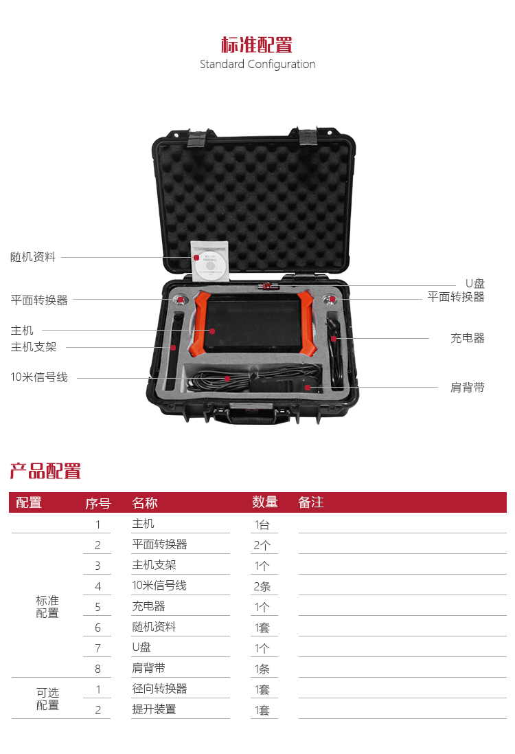 主機(jī):48*39*16.5CM,提升裝置:48*16.5*39CM,三腳架:111*22.5*23CM,徑向換能器:33