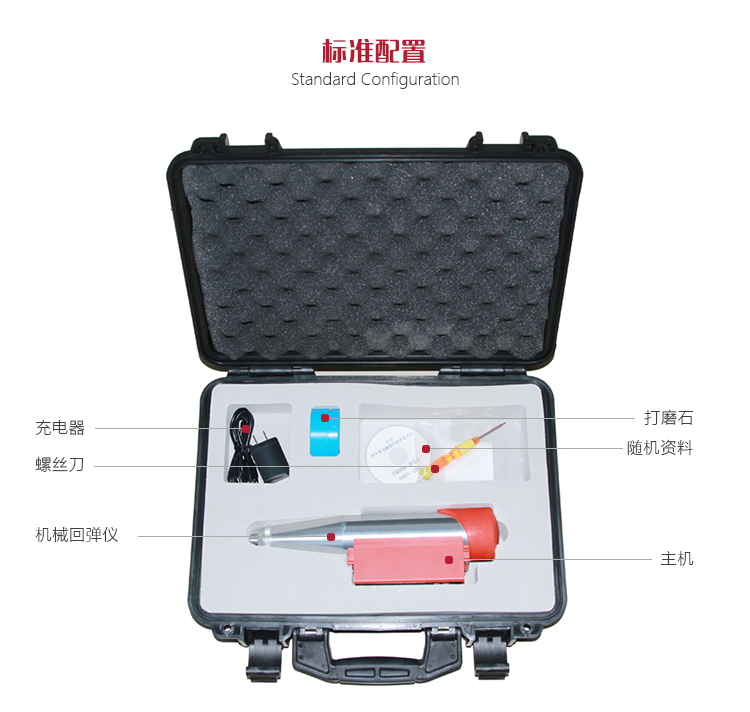 l 符合《回彈儀》(GB9138-2015)、《回彈儀法檢測(cè)混凝土抗壓強(qiáng)度技術(shù)規(guī)程》(JGJ/T23-2011)等相關(guān)標(biāo)準(zhǔn)。